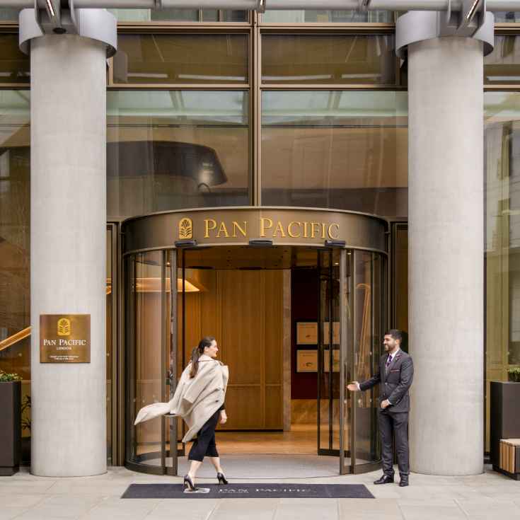 Arrival and reception area of Pan Pacific London, looking towards Orchard Lounge